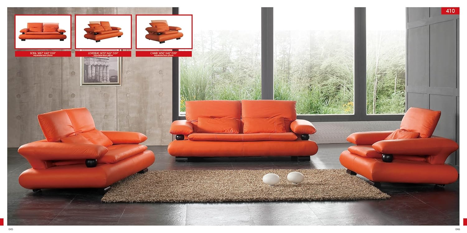 ESF Modern 410 Orange Italian Leather Sofa Set Contemporary orange leather sof
